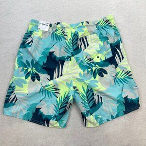 NWT Old Navy Blue Green Leaf Print 8" Inseam Swim Trunks Men's XL