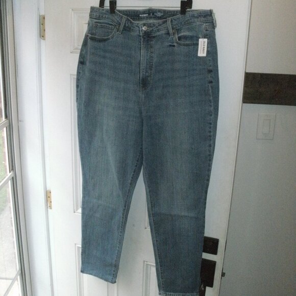 NWT Old Navy Blue Jeans O.G. Straight High Rise Smoothing Pockets Split Hem 18T