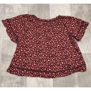 NWT Old Navy Boho Pink Floral Crop Top Size XL V-Neck Peasant Flutter Sleeve
