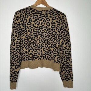 NWT Old Navy Cardigan Sweater Size M Cheetah Animal Print Crew Neck Brown