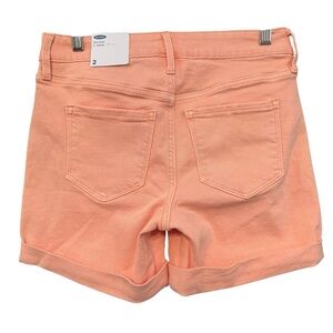 New with tags Old Navy mid-rise denim shorts in a pretty coral peach tone. Size 2, 5” inseam, cuffed hem, and light distressing for a casual vibe. Made with LYCRA® stretch fiber for extra comfort and shape retention. Zip fly and button waist.