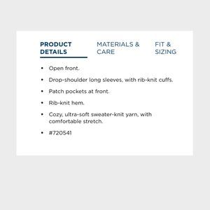 - Style: Cozy-Knit Open Front Cardigan Sweater, Patch Pockets, Rib-Knit Hem, Slouchy Relaxed Fit