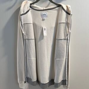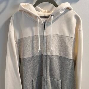 NWT Old Navy Cream and Gray Striped Zip Front Hooded Sweatshirt Size L