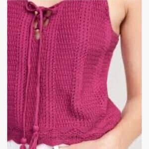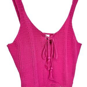 NWT Old Navy Crochet Pointelle Knit Tank Top Lace Up Size M Dragon Fruit Pink
