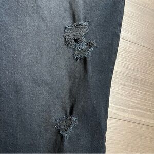 ๐ค Black denim jeans with distressing and a raw hem at the ankles