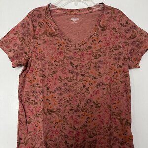 NWT Old Navy EveryWear Printed V-Neck Tee T-Shirt Desert Sun Pink Floral Women S