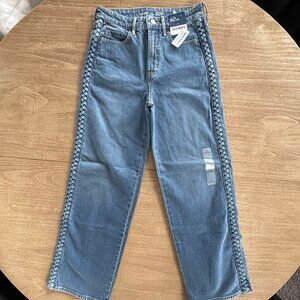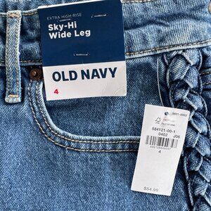 NWT Old Navy Extra High Rise Sky-Hi Wide Leg Jeans with Braiding, Size 4