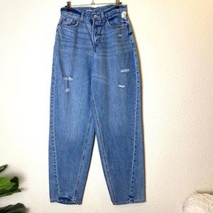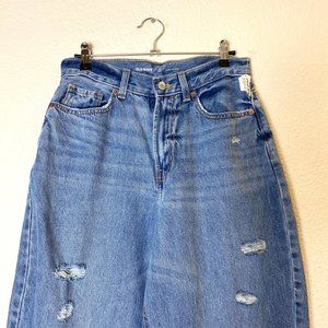 NWT Old Navy Extra High-Waisted Ripped Non-Stretch Balloon Jeans in Medium Distressed Blue, Size 4 Tall.