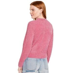 NWT Old Navy Eyelash Shine Fuzzy Pink A Boo Long Sleeve Crewneck Sweater Medium