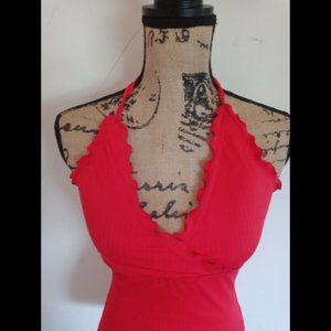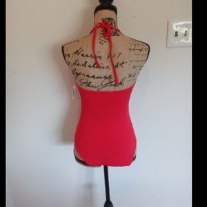 NWT Old Navy Faux Wrap V Neck Halter Lettuce Edge One Piece Swimsuit Sz S