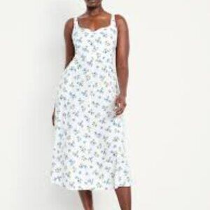 Old Navy Fit & Flare Sleeveless Midi dress Women's size XXL 2XL. Color is Cream with blue flowers.