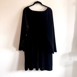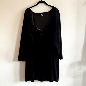 Keywords: Old Navy velvet dress XXL, black fit & flare mini, holiday party dress, little black dress, ’90s style velvet mini, scoop neck long sleeve dress