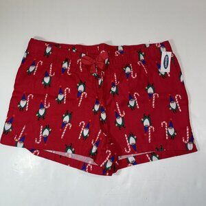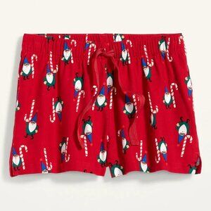 NWT Old Navy Flannel Boxer Pajama Shorts Sleep Lounge Red Elf Gnome Women XL