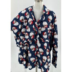 NWT Old Navy Flannel Pajama Set Santa Christmas Blue Long Sleeve Pants XXL