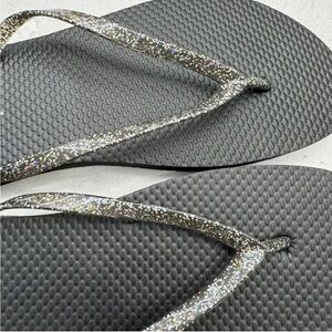 NWT Old Navy Flip Flops Sparkly Top Black Glitter Beach Thong Sandals for Women