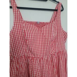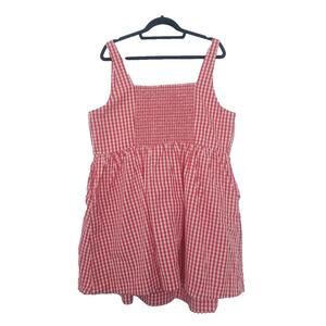 NWT Old Navy Gingham Sweatheart Neck Smocked Mini Dress Sz 2X Red Cottage Barn