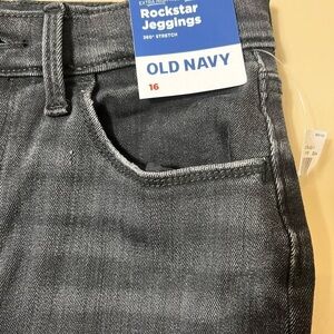 NWT Old Navy Girls Distressed Extra High Rise Rockstar Jegging Black Size 16