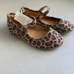 NWT Old Navy Girl's Faux-Suede Mary-Jane Leopard Brown/Black Flats, Size 8