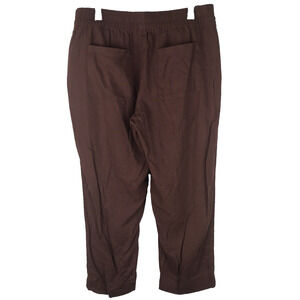 NWT Old Navy High Rise Straight Pants Linen Blend Pull On Brown Pockets Petite L