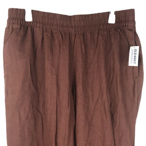 New With Tags Old Navy High Rise Straight Pants Linen Blend Pull On Comfort Waistband Drawstring Brown Pockets