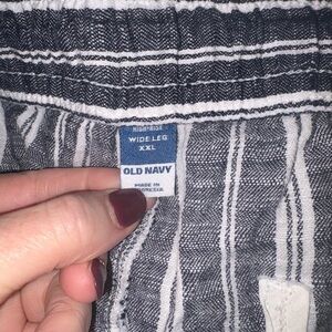 NWT Old Navy High Waised Wide Leg Linen Blend Pants XXL Striped Beachy Pull-On