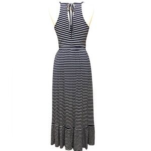 NEW with Tag- High-Neck Ruffle-Hem Navy & White Striped Maxi Dress