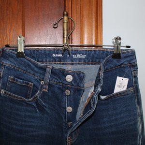 New with tags. Old Navy High Rise OG Straight Jeans. Secret-Slim Pocket. Button closure. Dark wash. unfinished, raw hem.