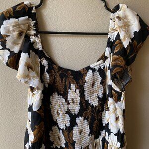 NWT Old Navy Jumpsuit/Romper. Black, white, and cream floral print. Size small petite (SP). Falls between capri to ankle-length depending on your exact, personal measurement.