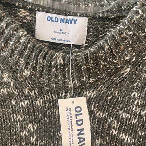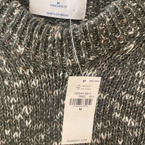 NWT Old Navy Knitted Cotton-Blend Sweater; Speckled Green; Medium (Regular)