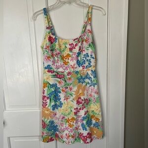 NWT Old Navy Linen Blend Pink/Orange Floral Fit & Flare Cami Mini Dress Size XS
