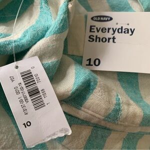 NWT Old Navy Linen Blend White and Turquoise Striped Everyday Shorts Size 10