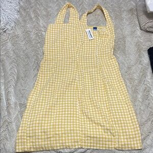 NWT Old Navy Linen-Blend Mini Dress - Yellow Gingham, Size M