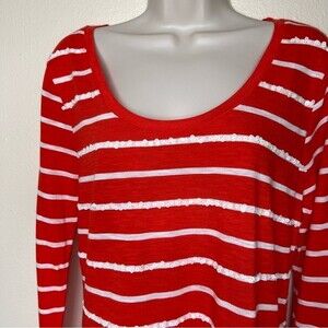 NWT Old Navy Long Sleeve Sparkle Red Stripe Scoop Neck Sequin T Shirt Women Med
