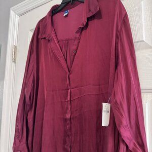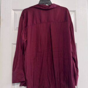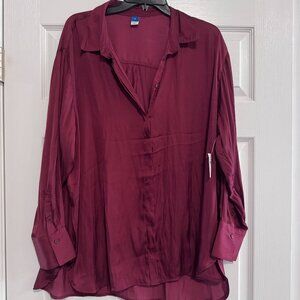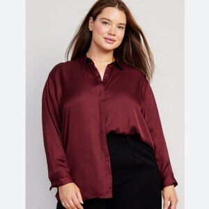 NWT Old Navy Maroon Loose Satin Button-Down Shirt