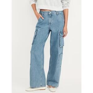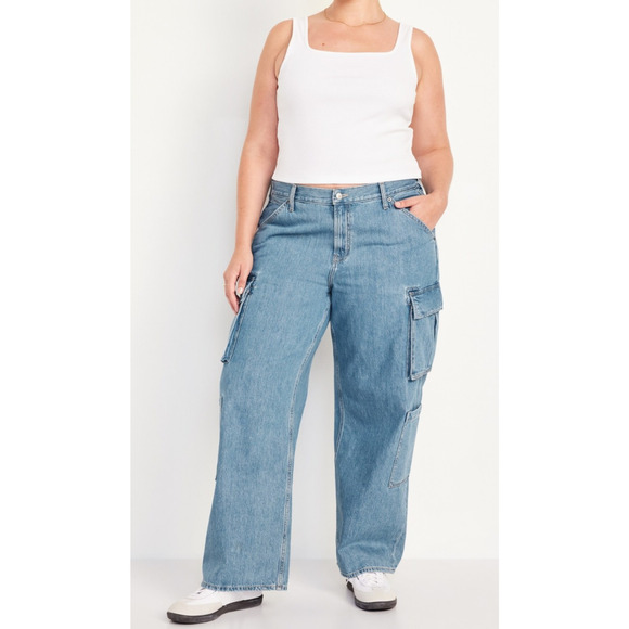 NWT Old Navy Mid-Rise Baggy Wide-Leg Cargo Jeans Blue Denim Women's Plus Size 16