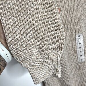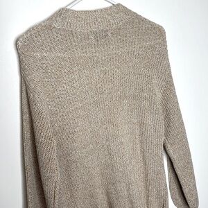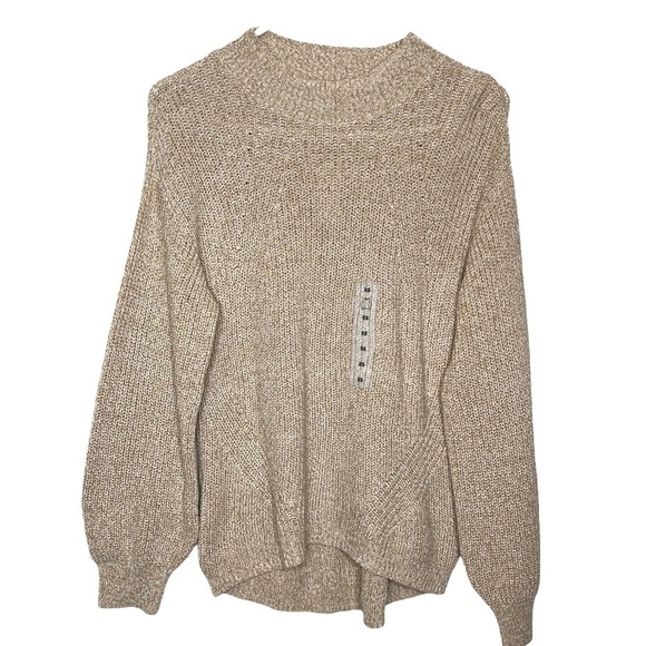 NWT Old Navy Mock Turtle Neck Heathered Beige Tan Balloon Sleeve Knit Sweater