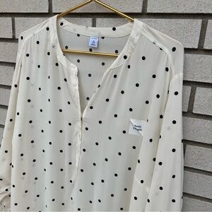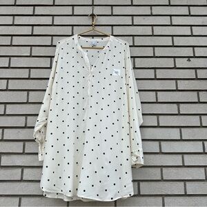 NWT Old Navy No-Peek Button-Front Plus Popover Stretch Tunic Black Dot Cream