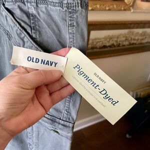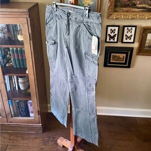 NWT Old Navy Pigment Dyed women’s low rise boot cut stretch cargo pants, multiple pockets, button/zip fly. Cotton/spandex blend.