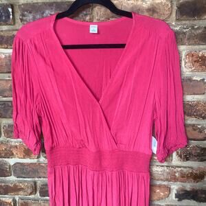 NWT Old Navy Pink Short Sleeve Empire Waist Surplice Maxi Dress Women's Small