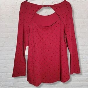 NWT Old Navy Polka Dot red long sleeve womans shirt blouse open twisted back L