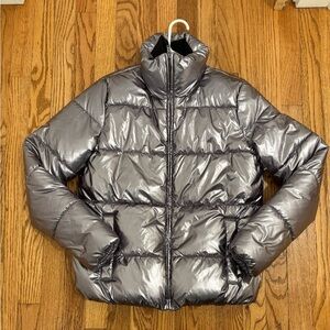 NWT Old Navy Puffer Jacket Size S Metallic Silver Full Zip up Insulated