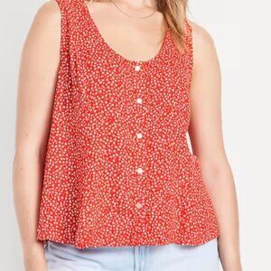 New with tags Old Navy sleeveless tank top in a bright red color with a delicate white floral print. Features a scoop neckline and decorative button-front detail. Lightweight and flowy, making it a great warm-weather staple or easy layering piece.