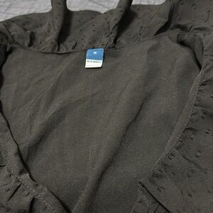NWT Old Navy Ruffle Blouse. Black Jack dotted print. Brand new sz M. Nice style. Perfect for work or going out. Wide sleeves and low neckline. Very nice shirt.