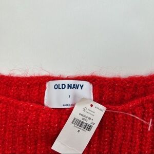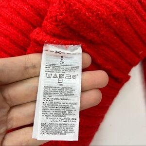 NWT Old Navy Solid Red Slouchy Cozy Boat Neck Pullover Sweater. Ribbed knit. Cozy textured. Long sleeves. Drop shoulder. Cotton, acrylic, polyester, nylon, spandex blend. Size Small. Armpit to armpit: 19". Armpit to end of sleeve: 17". Length: 22". (257)