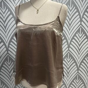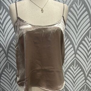 NWT This relaxed camisole in a soft brown/champagne shade features a square neckline and a silky fabric for an elegant look. Size large. Measures 20 incheses acrosss and 17 inches from neck to hem.