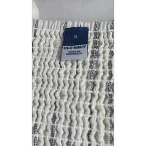 This is a NWT Old Navy Square-Neck Linen-Blend Midi Dress in size S. It is a white, A-line dress with a sleeveless design and a square neckline. The dress has a pullover closure and is made of linen material. It is suitable for summer, fall, and spring seasons. The dress is accentuated with straps and is manufactured in Indonesia.
