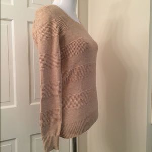 NWT! Waffle knit oatmeal scoop neck sweater; No wool = No itch! 57% cotton, 28% acrylic; 15% polyester; machine wash cold, dry flat.