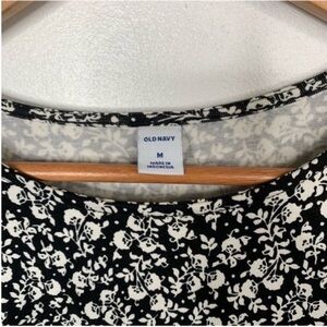 NWT Old Navy Twist Front Dress Black White Floral Women’s Medium Long sleeve