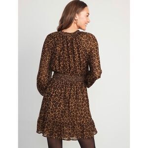 NWT Old Navy Waist-Defined Printed Smocked Mini Dress in Animal Print, Small