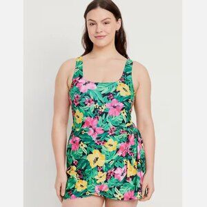 NWT Old Navy Women Wrap-Front Swimsuit Swim Dress Sarong Tropical Floral M